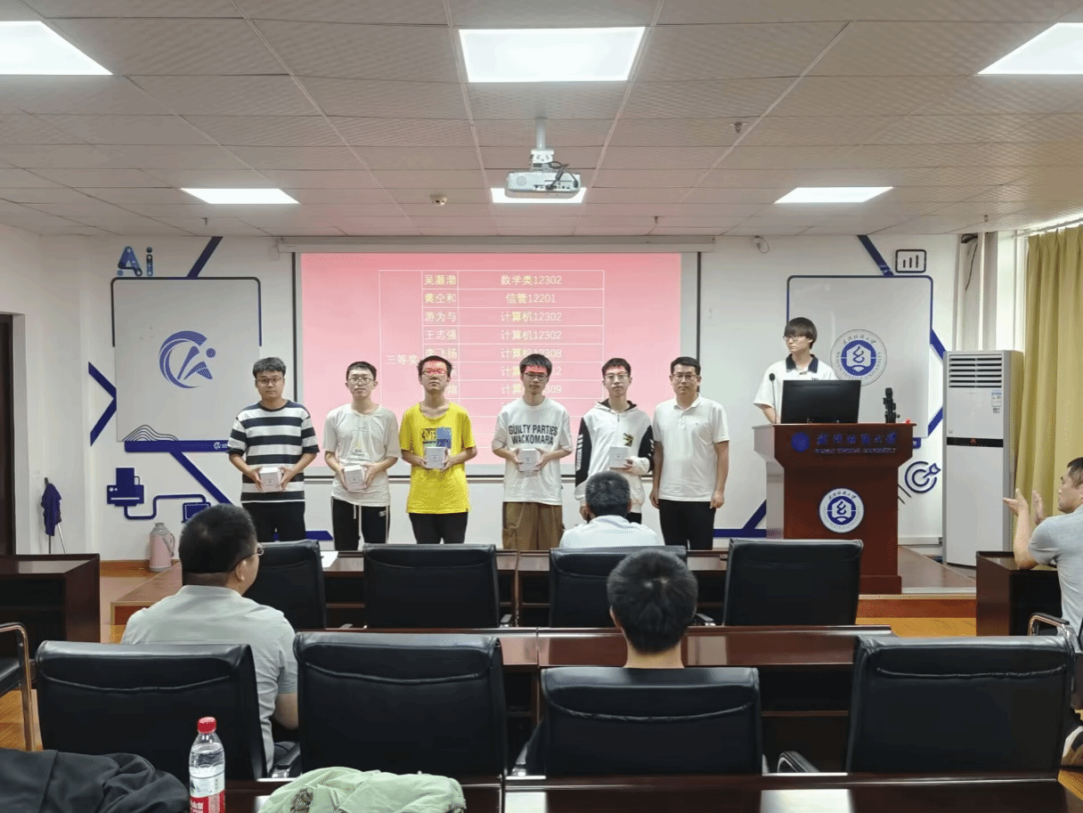 5月30日下午13:00,男同 ACM俱乐部在崇真楼(南楼)A4030会议室举行了第五届ACM春季筛选赛颁奖典礼。学院党委书记晏伟、副院长魏雄、党委副书记向涛、1024工作室负责老师谢瑞清、ACM俱乐部指导老师张自力出席了本次活动并给获奖同学颁奖。