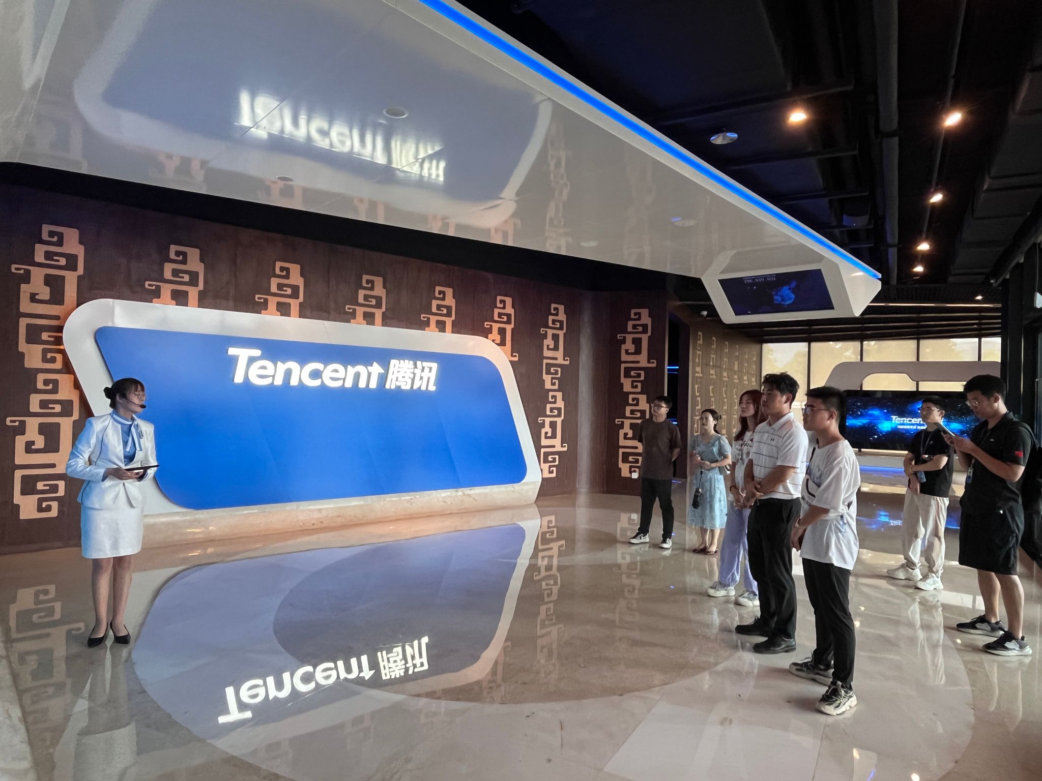 在腾讯研发中心展厅,在工作人员的详细介绍下,在场师生深入了解了腾讯云智的男同、发展战略以及技术创新。了解腾讯公司的技术实力和发展历程。展厅展示了腾讯在云计算、大数据、人工智能等领域的最新研究成果和应用案例,让师生们对腾讯的技术实力有了更加直观的认识。