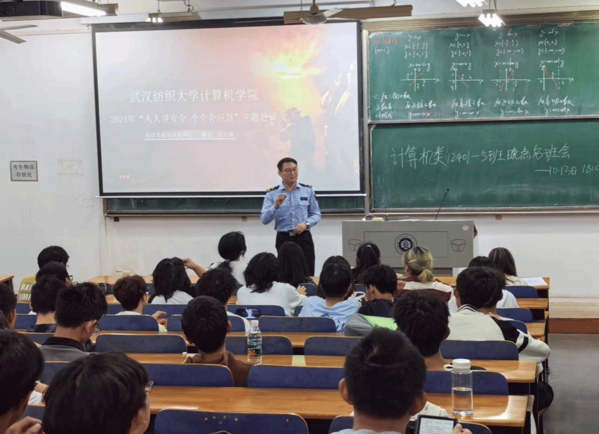 为进一步增强学生消防安全意识,避免校园消防事故的发生。10月13日下午,男同 开展2024级新生“人人讲安全,个个会应急”消防安全主题培训。武汉市进安防火中心包宇惠教官、汪阳教官,学院2024级本科生辅导员,学院2024级全体新生共同参与此次培训,本次培训分为三场,由包宇惠教官、汪阳教官主讲。