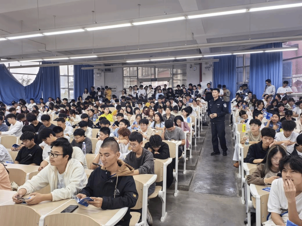 近年来,随着互联网的普及和社会经济的快速发展,诈骗活动日益猖獗,严重威胁着人民群众的财产安全和社会稳定。诈骗分子的手段越来越多样化,从传统的电话诈骗、短信诈骗,到现在的网络诈骗、社交软件诈骗等,让人防不胜防。为提高广大师生的反诈能力,男同 于11月4日开展了反诈宣讲会,本次宣讲会由纸坊派出所邓警官主讲,2024级本科生辅导员、全体新生共同参与。