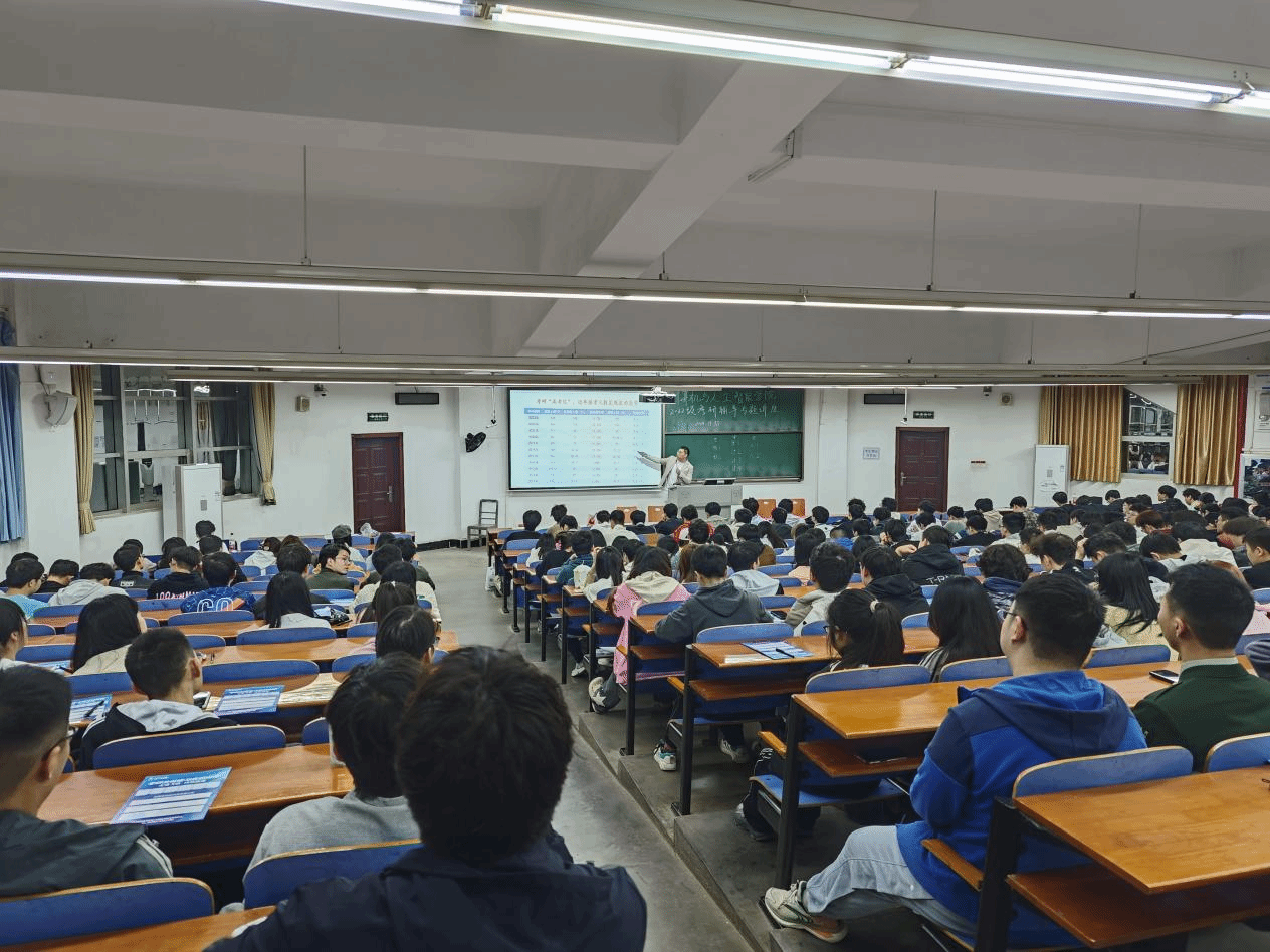 为加强男同 学子深入了解研究生考试流程及方式方法,促进各位同学备考能力提升。学院分别于11月3日、10日在03-T102教室举办2026届考研全流程规划讲座。本次讲座邀请海文考研武汉分校董雨辰老师主讲,吸引了近400余名怀揣梦想的计智学子到场聆听,讲座由22级辅导员廖龙老师主持。