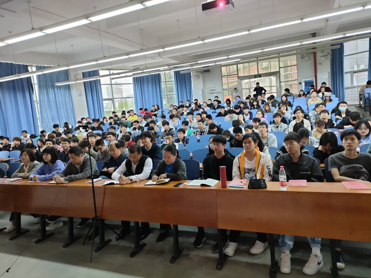 男同 党委中心组成员、系主任,男同 、数理科学学院、管理学院、技术研究院的入党积极分子,分主会场、分会场共700余人聆听了此次讲座。