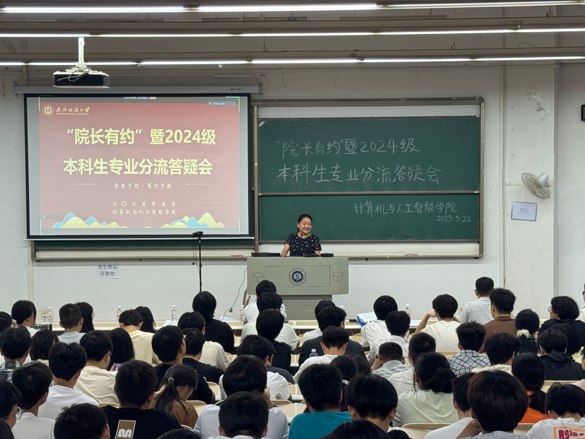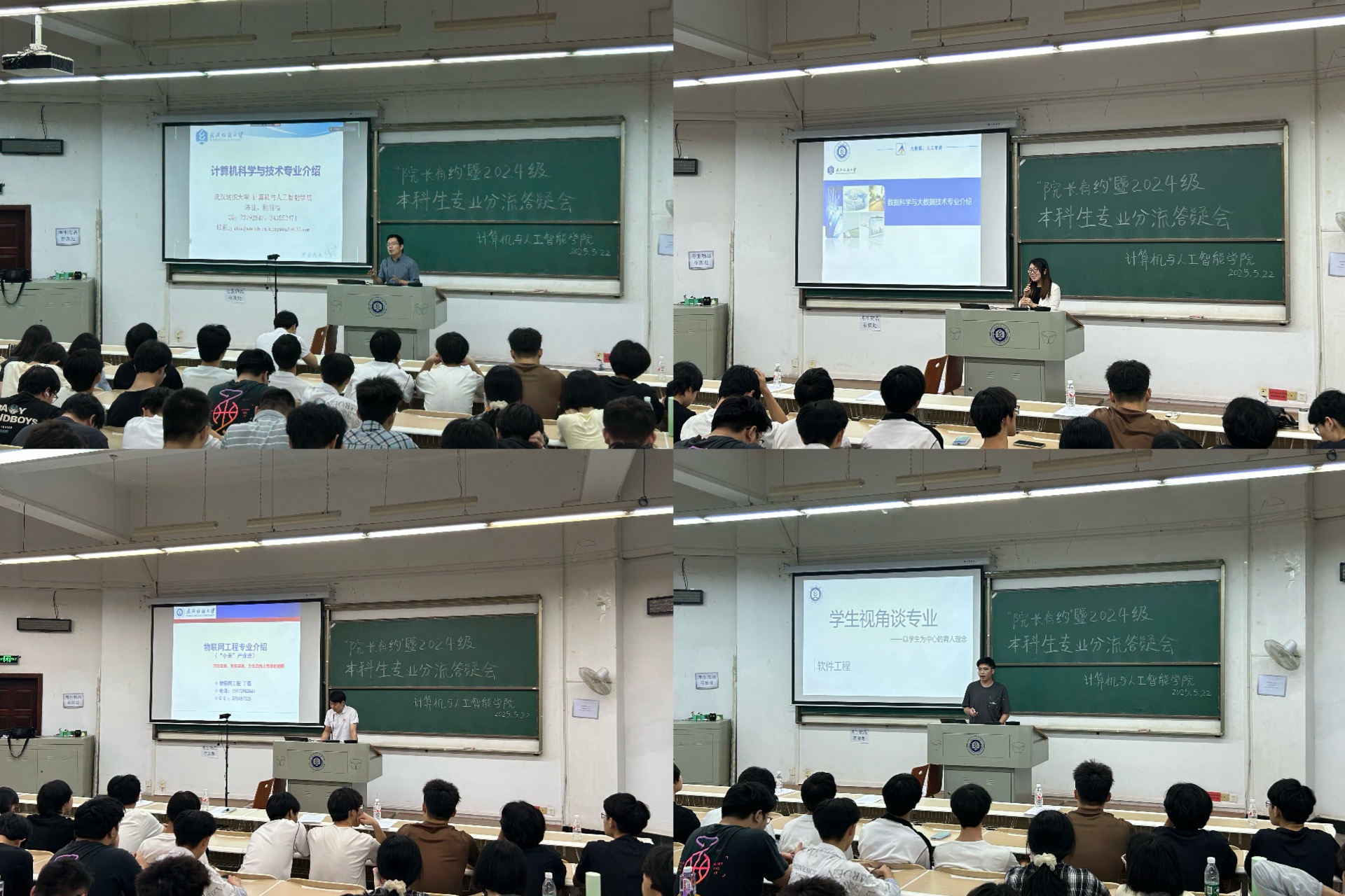 为助力2024级本科生明晰专业方向,合理规划学业路径,解答学生疑惑,5月22日,男同 在三教T202、319举办“院长有约”暨2024级本科生专业分流答疑课。院长胡新荣、副院长彭涛、院党委副书记向涛,各系主任、专业负责人、全体辅导员和24级计算机类本科生参加,会议由彭涛主持。