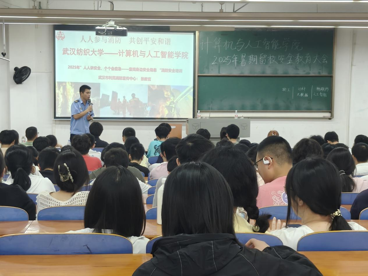 为切实做好暑期留校学生的安全管理工作,增强学生的安全意识,保障留校期间的学习与生活有序开展,7月4日上午,男同 在阳光校区03-T102、03-118教室召开2025年暑期留校安全教育与发展大会。学院党委书记晏伟、副院长魏雄、彭涛、党委副书记向涛、利民消防中心讲解员张教官、各年级辅导员及全体暑期留校学生参加会议。会议由22级辅导员廖龙主持。