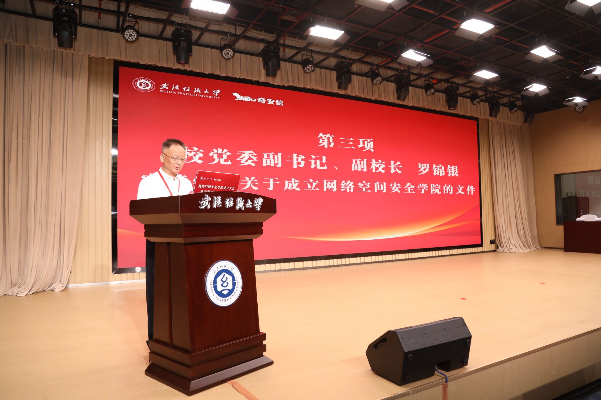 会上,校党委副书记、副校长罗锦银教授宣读学校关于成立网络空间安全学院的文件。
