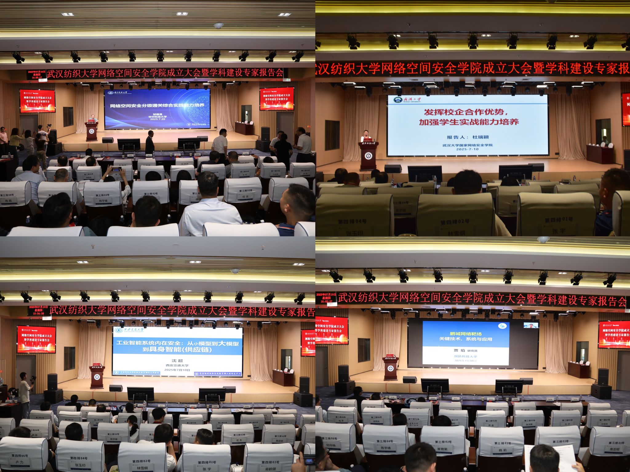 成立大会后,学校举办网络安全前沿技术论坛。论坛聚焦高素质实战型人才培养,特邀国防科技大学贾焰教授、西安交通大学沈超教授、华中科技大学邹德清教授、武汉大学杜瑞颖教授等专家作专题报告。专家们围绕网络靶场技术、工业智能安全、分级实训模型及校企协同培养等主题,分享了“KSL分级实训模型”“第三学期集中实训制”等创新成果,为网络安全人才培养提供了前沿思路与实践路径。