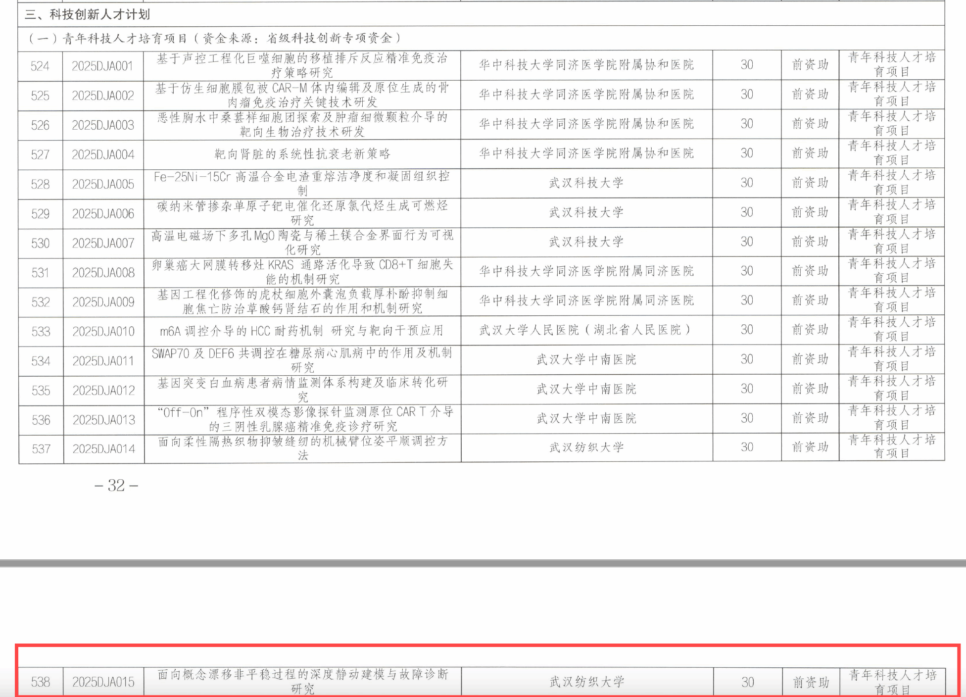 近日,2025 年度省级科技计划项目立项名单揭晓,男同 王兆静老师主持的项目成功入选青年科技人才培育项目。这是王兆静老师继主持国家自然科学基金、湖北省自然科学基金等省部级以上科研项目后,在科研领域获得的又一重要认可,不仅彰显了其个人的科研创新能力,也体现了男同 在青年科技人才培养及智能制造领域科研实力的稳步提升。