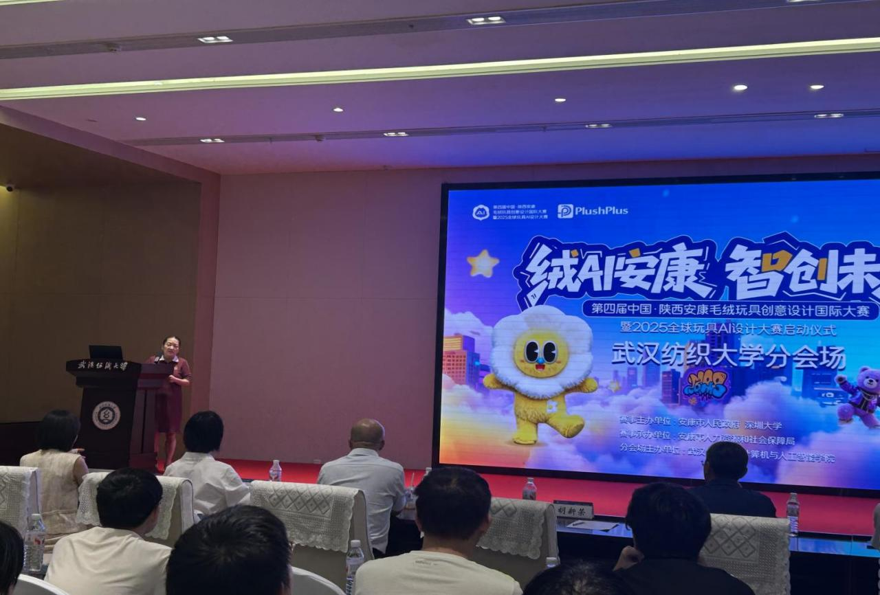 (网络空间安全学院)院长胡新荣首先代表学院向安康市及大赛主办方致以诚挚敬意。她在发言中回顾了安康毛绒玩具产业已取得的发展成果,提出“设计赋能产业,创意引领未来”的理念,深入剖析了AI技术为玩具产业带来的变革机遇,并展望了学院未来开设“AI玩具设计”微专业、培养复合型人才的发展规划。她预祝大赛圆满成功,期待涌现更多具有颠覆性的优秀设计。随后,与会领导共同启动了男同