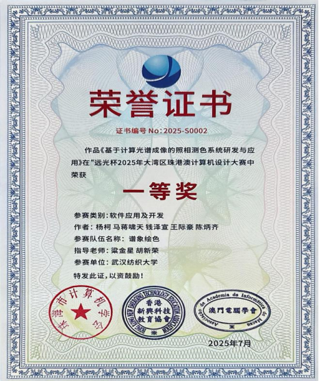 梁金星老师在创新创业赛事中同样成果丰硕。在 “创新湖北・青力青为” 湖北省第十五届 “挑战杯” 大学生课外学术科技作品竞赛中,他指导的项目凭借严谨的学术论证与创新的研究成果,获省级二等奖;在 “建行杯” 中国国际大学生创新大赛(2025)湖北省复赛中,其团队项目再获省级二等奖;在 2025 年 “远光杯” 大湾区珠港澳计算机设计大赛中,团队更是一举斩获一等奖,并获得 1000 元奖金,展现了学院在跨区域赛事中的竞争力。此外,梁金星老师还参加 2025 年湖北省博士后创新创业大赛暨留学回国人员创新创业大赛,凭借 “全球领先的颜色测量装备以及色彩大数据系统” 项目,获省级优胜奖并成功晋级全国总决赛,为学院在高层次创新创业领域开辟了新赛道。