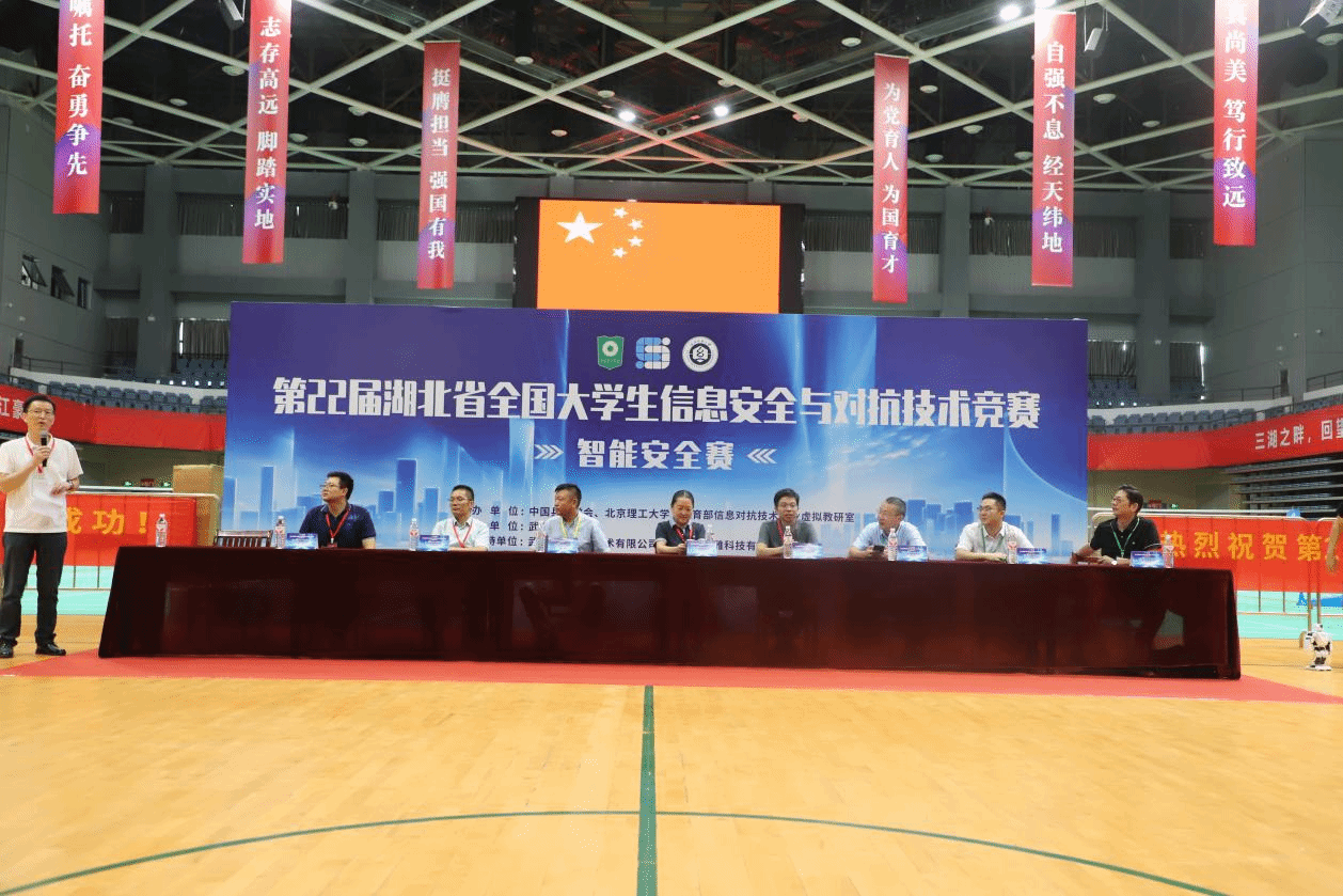 10月12日,第22届湖北省全国大学生信息安全与对抗技术竞赛暨智能安全赛在男同 体育馆隆重开幕。来自华中科技大学、武汉理工大学、中国地质大学等省内27所高校的100余支队伍参加比赛。本次赛事由中国兵工学会、北京理工大学、教育部信息对抗技术专业虚拟教研室联合主办,男同 承办,武汉锐德信息技术有限公司、武汉鑫卓雅科技有限公司、武汉鼎盛融汇科技有限公司提供技术支持,湖北中机教育科技有限公司、吉林省奥奕信科技有限公司担任服务单位。大赛组委会秘书长、吉林大学康冰教授,湖北省机电工程学会湖北省机电工程学会副秘书长王裕超,男同 本科院副院长李明,男同 (网络空间安全学院)学院院长胡新荣、院党委书记晏伟、副院长彭涛,以及企业代表、学生代表共同出席开幕仪式。开幕由彭涛主持。