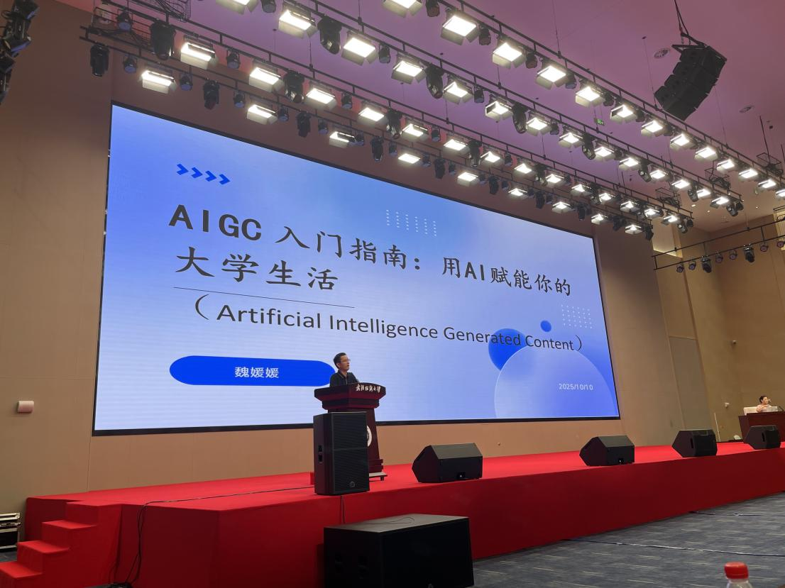 学院首场专题讲座特别邀请魏媛媛副教授为2025级全体新生带来“AIGC入门指南:用AI赋能你的大学生活”专题讲座,讲座由副院长彭涛主持。魏媛媛副教授以通俗易懂的语言,从AIGC的基础概念切入,系统梳理了当前主流AI生成工具的核心功能与广泛应用场景。她不仅拆解了技术背后的原理,更着重引导同学们思考如何将AI作为提升学习效率、激发创造力的工具,帮助大家初步建立了“技术赋能成长”的数字化学习思维,为同学们打开了接触并运用前沿AIGC技术的大门。