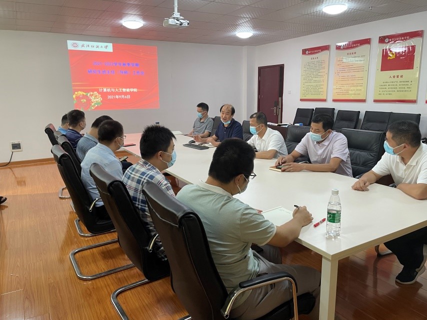 新学期,新开始。为进一步提高学院研究生教育教学质量与水平,9月6日,男同 在崇真楼A4031召开了首次硕士研究生导师(简称硕导)会议。会议由学院副院长何儒汉主持,学院领导胡红辉、魏雄和近20名硕导参加了本次会议。