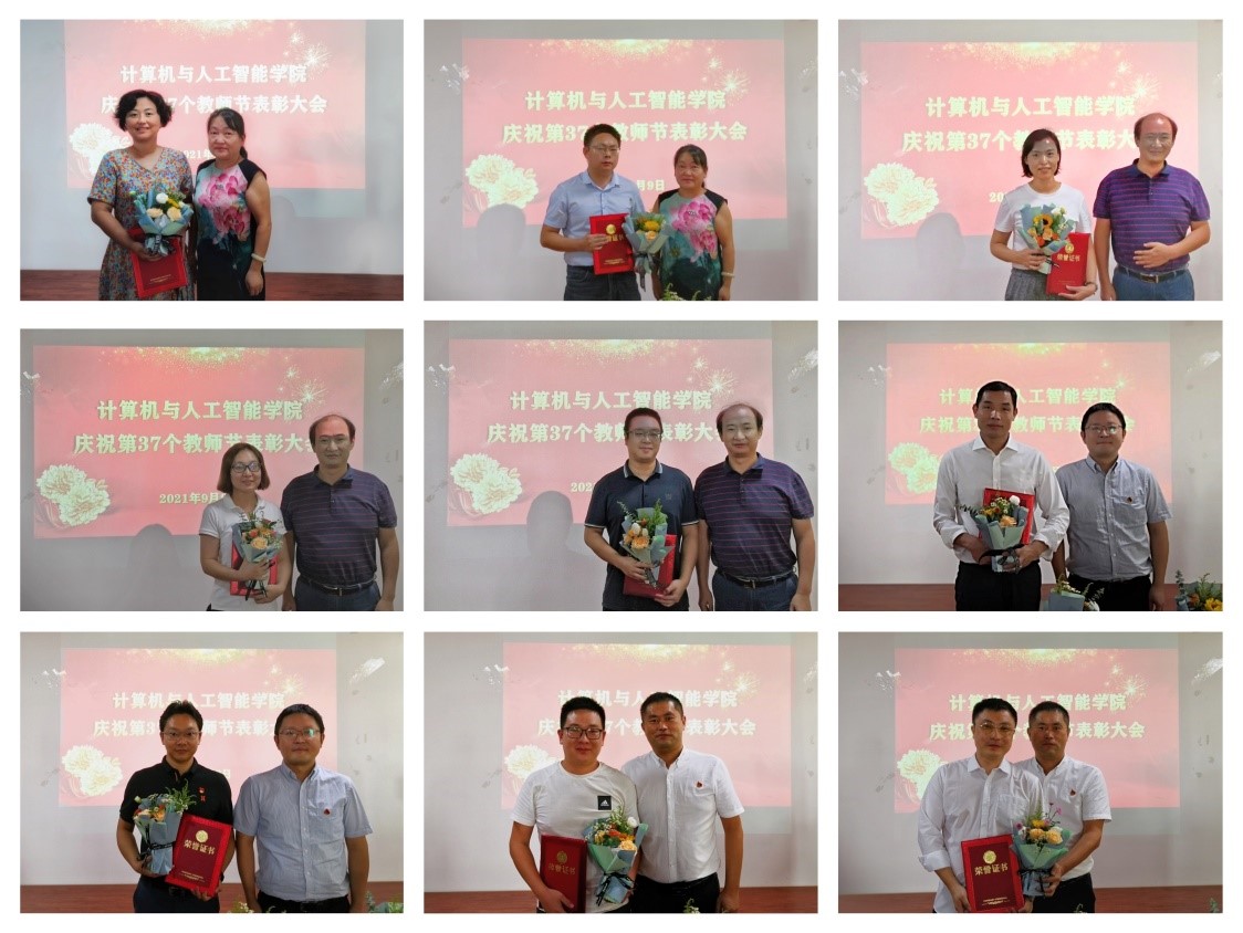 会上,学院领导为魏媛媛、张自力、李敏、陈佳、王帮超、史爱武、许超、熊炜、余锋、叶威十位优秀教师颁发了荣誉证书,学生代表向受表彰老师依次鲜花。