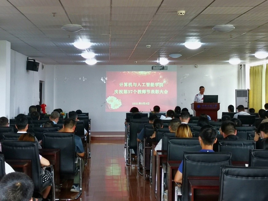 铸魂纺大,筑梦华夏。为庆祝第37个教师节,9月9日下午,男同 在崇真楼A4030举办了教师节表彰大会。学院领导胡红辉主持大会,学院领导班子、全体教师和学生代表约120人共同参与了此次会议。