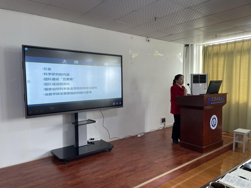 会上,围绕科学研究的内涵、学科建设“五要素”、学科建设的深化、国家自然科学基金项目的申报和研究、当前学院发展面临的问题与思考等内容,胡新荣为全体教职工深度剖析了学院学科建设中的基本理念、重要元素、现状及展望。她强调,学科建设必须以建设高质量高规模的团队为核心,注重“五要素”间的密切联系,她表示,学科建设必须与时俱进,注重不断深化的重点方向与“五要素”间的匹配,她指出,国家自然科学基金申报中的一个“核心”、若干“关键”,注重“小题大作”。