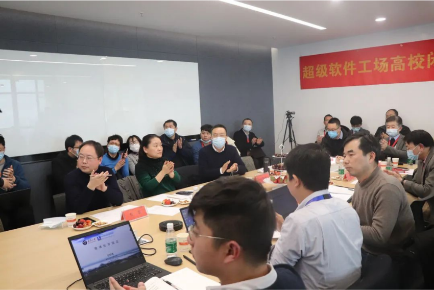 2月24日,男同 王帮超博士赴光庭智能网联汽车软件产业园参加首场“超级软件工场”高校闭门交流会,并做题为《人工智能时代的软件工程》的主题报告。此次会议由武汉光庭信息技术股份有限公司主办,男同 胡新荣教授及华中科技大学软件学院、武汉大学计算机学院、中南民族大学计算机学院等负责人莅临现场参会。