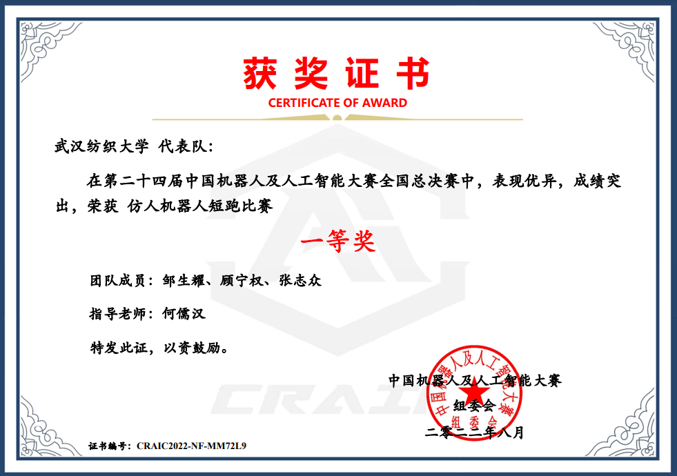 7月25日-29日,第24届中国机器人及人工智能大赛全国决赛成功举办。近日,大赛成绩公布,男同 本次取得了两项全国一等奖,一项省级三等奖的好成绩。