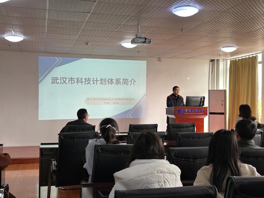 3月2月下午14点,武汉市科技局驻纺大成果转化联络员刘青主任、安然主任受邀来男同 开展科技计划体系专题讲座,该讲座由学院党委书记晏伟主持,学院领导班子、科研团队负责人及骨干教师共同参加了该讲座。