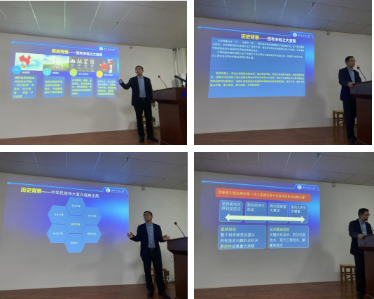 姜明华以历史背景为出发点,从新格局、新模式、新工业革命、新全球治理四个方面解读了百年未有之大变局、中华民族伟大复兴战略全局的含义,告诫同学们当今世界科技是第一生产力、人才是第一资源、创新是第一动力,勉励大家要抓紧机遇、奋起拼搏,提升创新能力、争做第一资源。