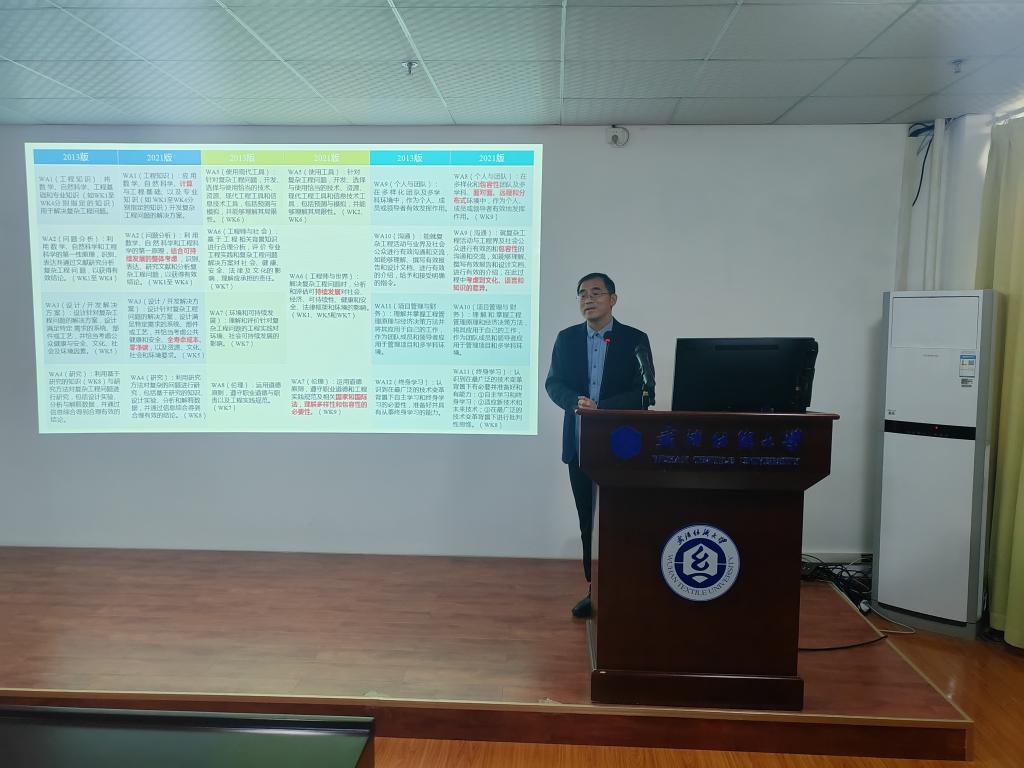 相关专业认证工作开展实际,解读了工程教育专业认证的标准和底线,重点讲解了工程教育专业认证的核心理念,培养目标和毕业要求之间的逻辑支撑关系,课程体系、课程目标、教学内容、教学环节、课程考核的设计如何支撑毕业要求,教学评价体制机制,认证持续改进等关键内容。姜校长的报告高屋建瓴、内容丰富、分析透彻、指导性强,对推进学院工程教育专业认证工作具有很强的理论和实践指导意义。