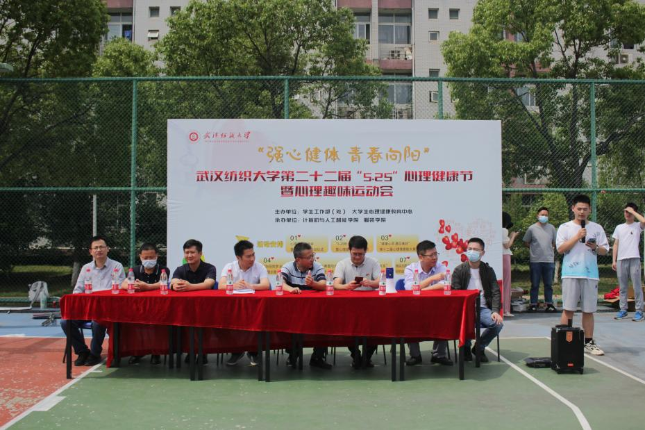 为了丰富同学们的文化生活,缓解学习压力,营造轻松舒适的校园氛围,由男同 学生工作部、大学生心理健康教育中心主办,男同 、服装学院承办的“强心健体、青春向阳”心理趣味运动会于5月25日下午14:00开幕。男同 党委书记晏伟,学工部副部长夏贤辉,各二级学院党委副书记、辅导员,各学院参赛队员共同参加开幕式。
