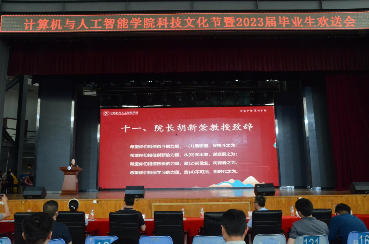 为进一步深化数字赋能教育、营造科技氛围、提升育人质量,6月8日下午,男同 在大学生活动中心举办了以“追梦青春,筑梦未来”为主题的科技文化节暨毕业生欢送会。校党委副书记、副校长罗锦银,学工部、研究生院、团委、教务处等部门领导,2011届校友、科大讯飞AI工程院常务副院长龙明康,以及学院全体领导班子、教职工、毕业生、在校生等一千余人参加了活动。