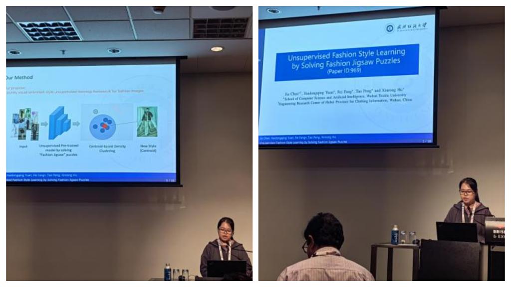 7月10日,方菲老师在P5报告厅做了题为《Unsupervised Fashion Style Learning by Solving Fashion Jigsaw Puzzles(通过解决时尚拼图问题的无监督时尚风格学习)》的口头报告,展示了学院科研团队的研究成果。其中,方菲老师所在的报告小组主席赞扬其所报告论文的研究成果“非常有意义,非常有实用价值”,这说明男同 以纺织服装相关应用为导向的科学研究有着重要的意义和发展前景。