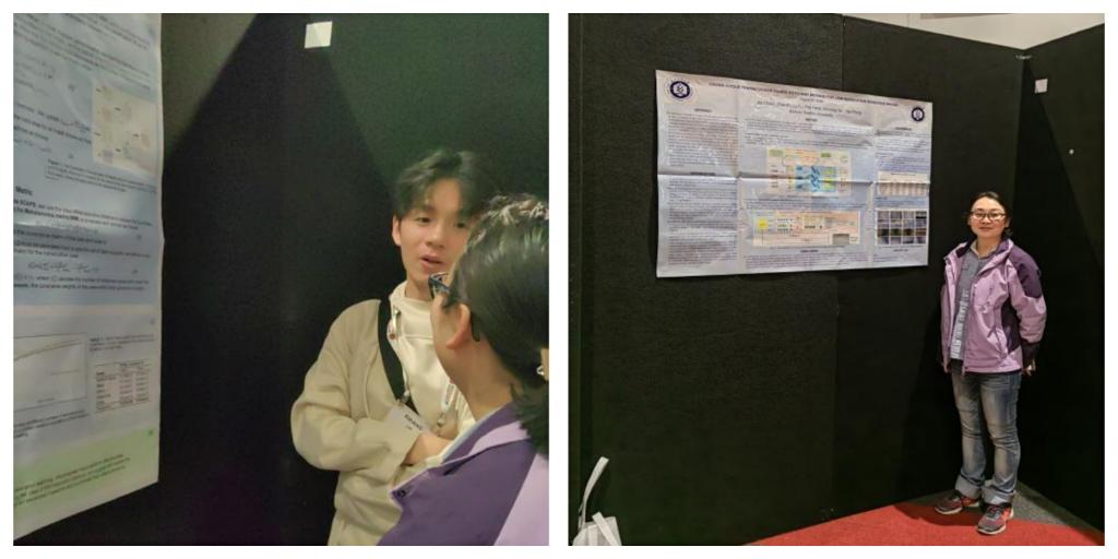 同时,陈佳教授展示了《Cross-cycle Transformer-based stitching method forlow-resolution borehole images(基于交叉循环Transformer的低分辨率钻孔图像缝合方法)》的论文海报。他们在各自的会场都与其他国家和院校的参会代表进行了积极的问答和交流。在陈佳教授的海报展示区,很多专家学者对我们的研究方向很感兴趣,因为钻孔图像的缝合方法在建筑安全领域有着重要的应用价值。