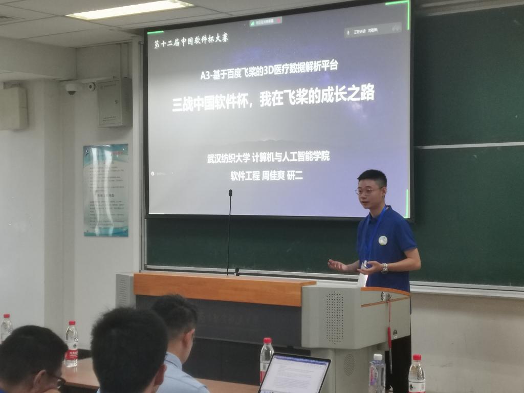 学子周佳爽凭借其优异表现以及丰富的参赛经历,受邀参加了百度举行的“飞浆国赛交流会”,并以《三战中国软件杯,我在飞桨的成长之路》为主题作了报告,与大家分享了比赛经历、收获与成长历程。