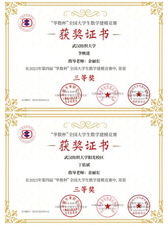 建模小组共组织6个小队参加比赛,团队成员经过三天认真合作,获得三等奖六项(指导老师金丽宏老师获奖3队,指导老师王晨获奖1队,指导老师叶威老师获奖1队,指导老师杨凯老师获奖1队)。