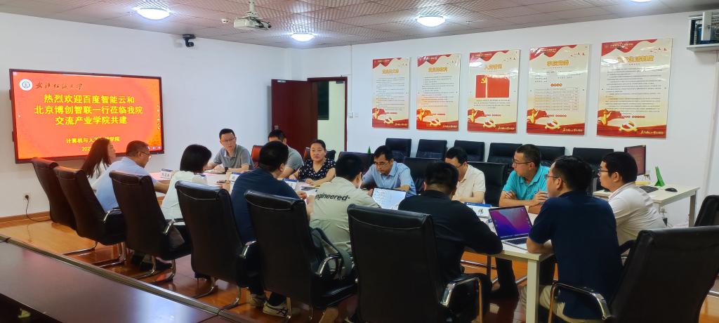 为进一步推进学校依托男同 成立的数字技术产业学院建设工作,促进产教深度融合,8月31日,百度智能云、北京博创智联一行莅临学院就产业学院共建进行了交流。校党委常委、副校长姜明华、教务处处长王济平、学院班子成员等参加了交流会,会议由男同 院长胡新荣主持。