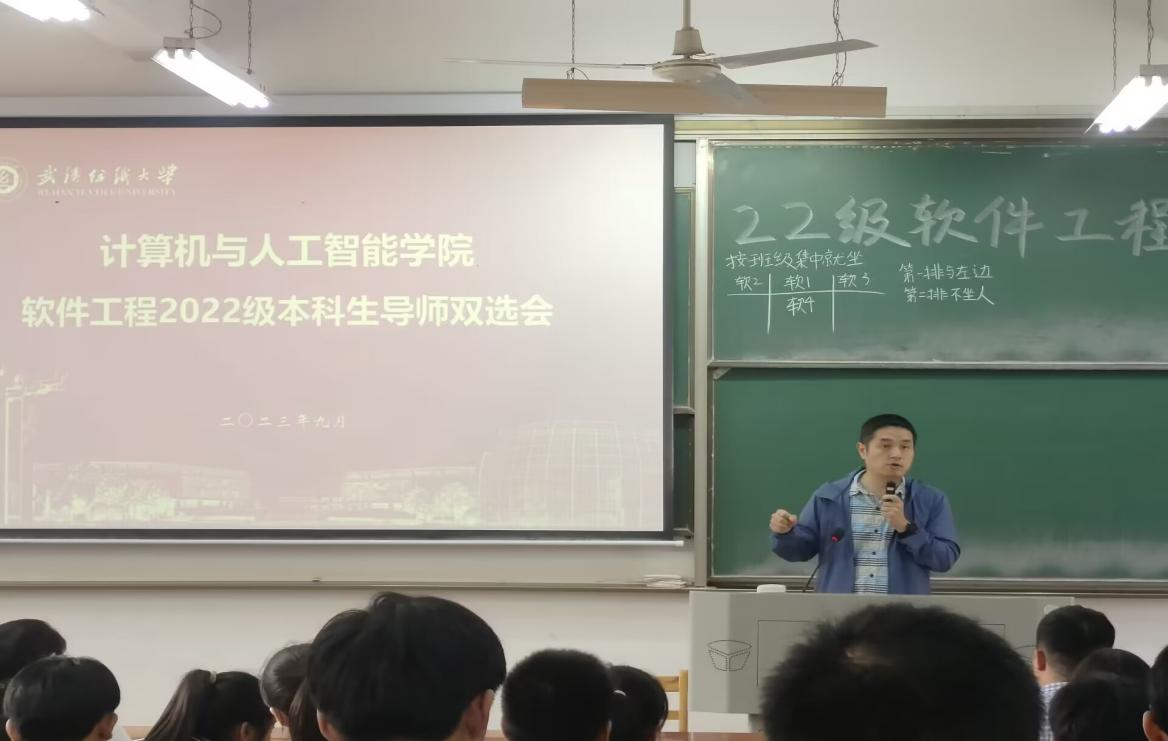 新学期伊始,男同 软件工程专业2022级本科生导师双选会于9月14日下午在阳光校区03-119教室隆重举行,软件工程系专任老师和辅导员廖龙参加双选会,会议由软件工程系主任叶鹏主持。