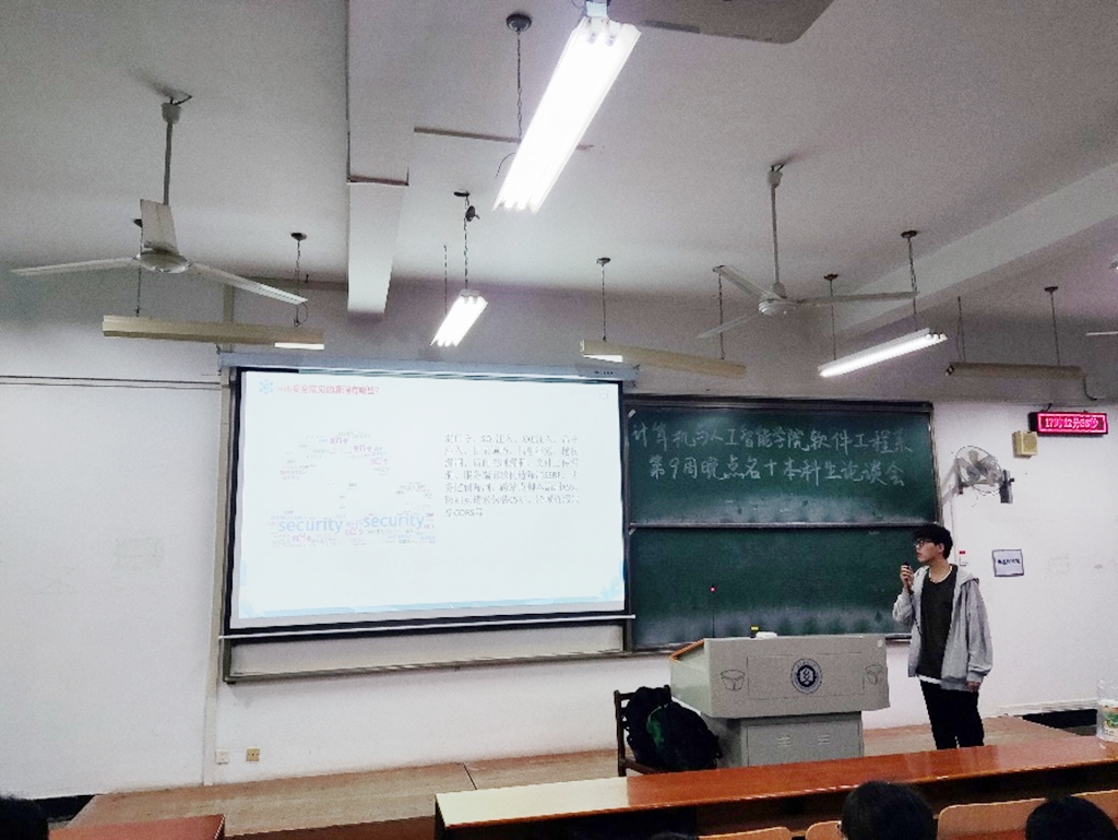 为更好地帮助本科生学习成长,了解相关学科领域前沿知识,男同 软件工程专业于11月5日下午,在03-120教室举办了本科生论坛。本次本科生论坛主题为“信息安全技术研讨”,软件工程专业学生、网络安全协会同学参加了本次论坛。论坛由软件工程系教师汤俊伟主持,软件工程系主任叶鹏出席了本次论坛。