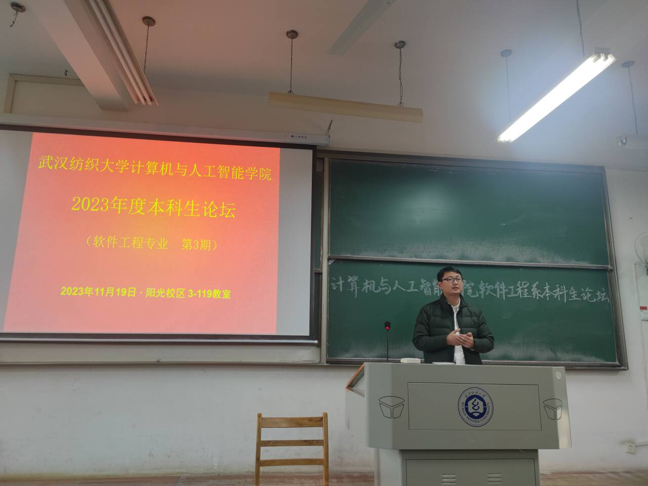 11月19日晚17:00至18:30,在阳光校区3号教学楼119教室,男同 软件工程系举办第3期本科生论坛,本次论坛邀请了2021级软件工程专业3位本科生和2021级物联网专业1名本科生做论坛报告,论坛由软工系副主任梁金星主持。