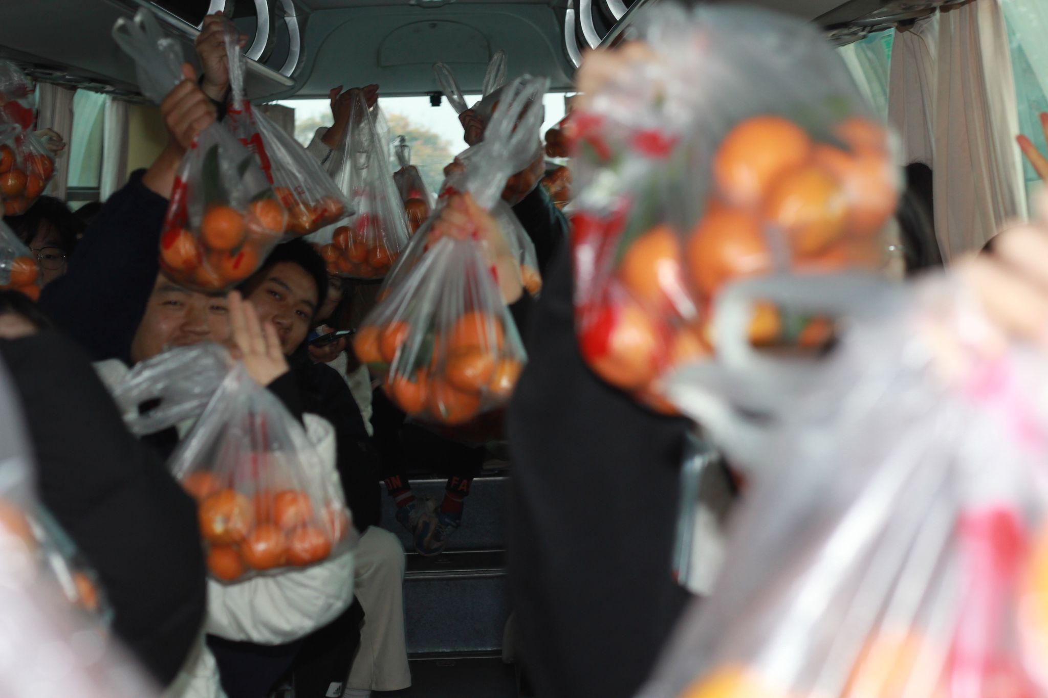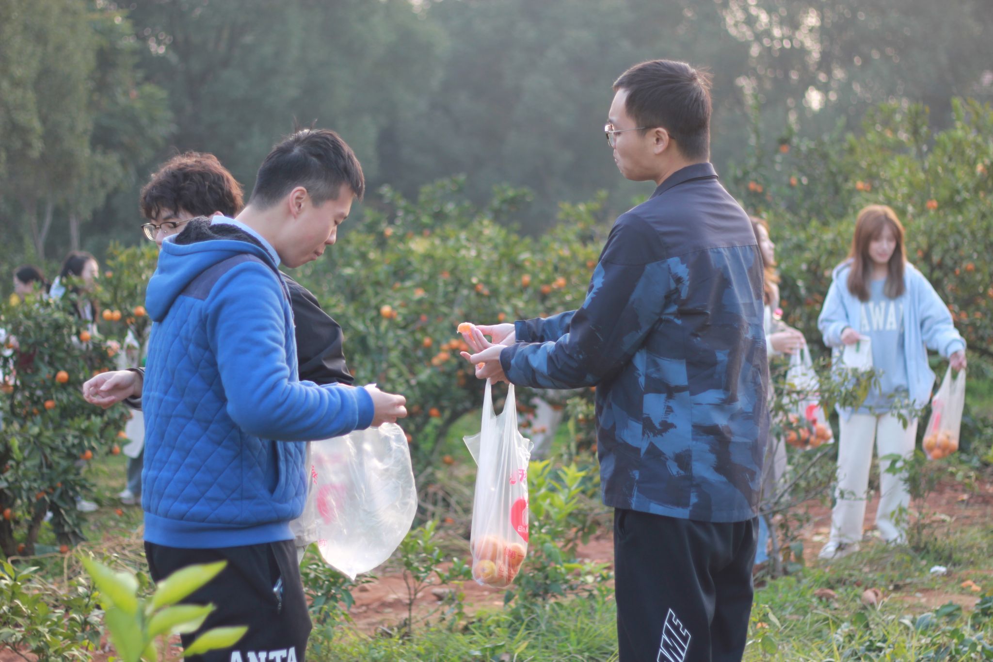 为了更好地践行社会责任,活动的最后一站定在了当地的果园。师生们积极参与助农活动,共同体验农耕的艰辛。在果园中,大家一同投入到桔子的采摘中,展现出团结协作的良好精神风貌。