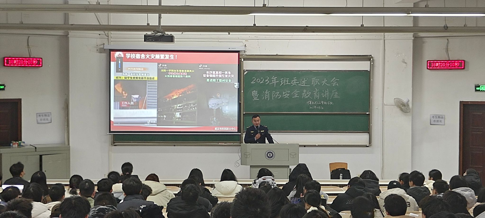 为了提高男同 师生的消防安全意识,增强消防技能,12月17日,武汉利民消防中心受邀为学院师生在3号教学楼T202教室举办了一场别开生面的消防安全教育讲座。讲座旨在通过专业的消防知识和实践经验,帮助师生了解火灾的危害,掌握预防火灾的方法,以及在火灾发生时如何自救和互救。