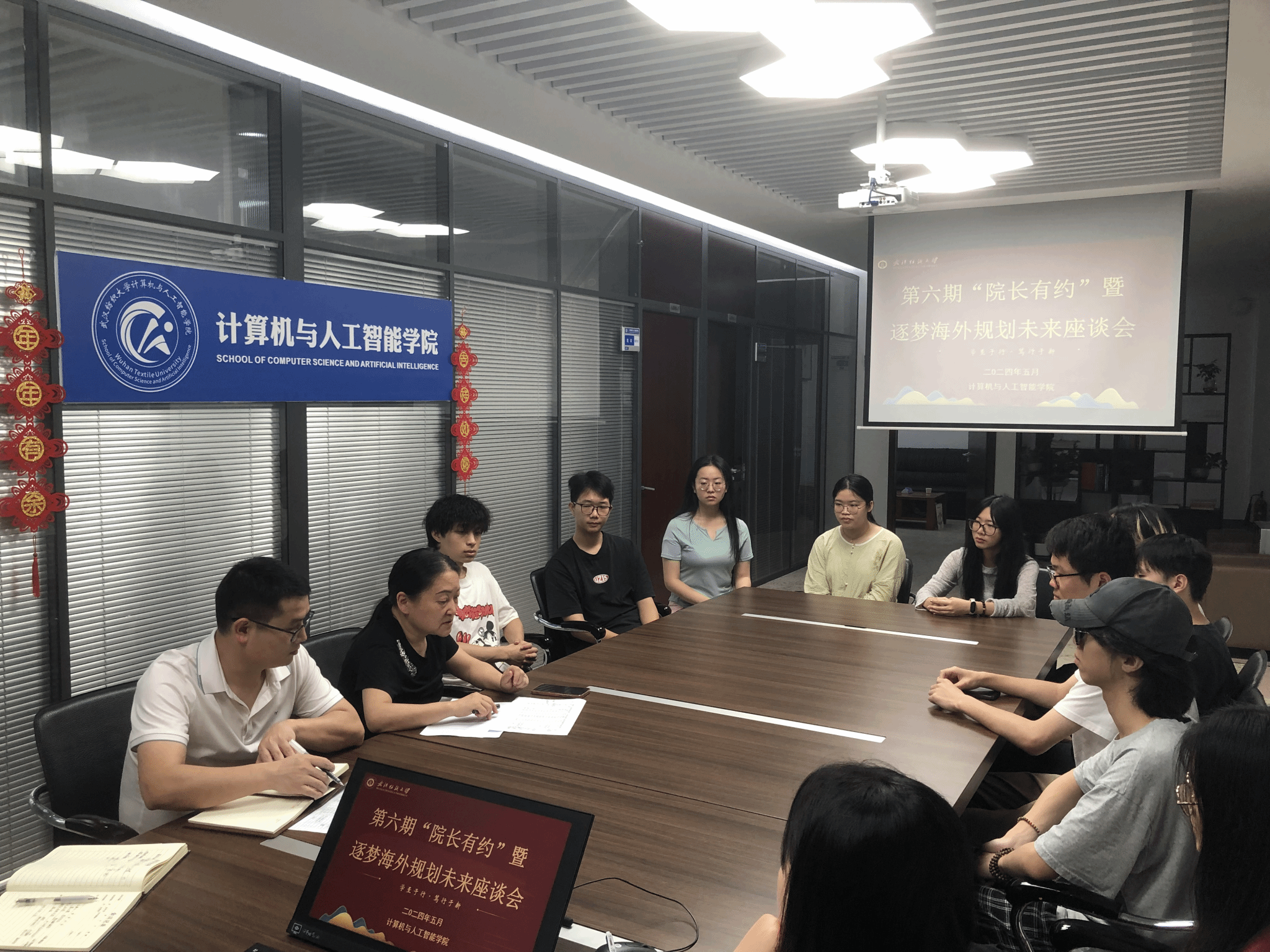 为引导学生规划访学生活,激发学生留学热情,5月11日上午,男同 院长胡新荣应邀在崇真楼南楼A4008召开逐梦海外规划未来座谈会。会议由学院党委副书记向涛主持,11名报名参加暑期法国电子与计算机信息通用工程师学院访学活动的本硕学生和辅导员余梦帆参会。