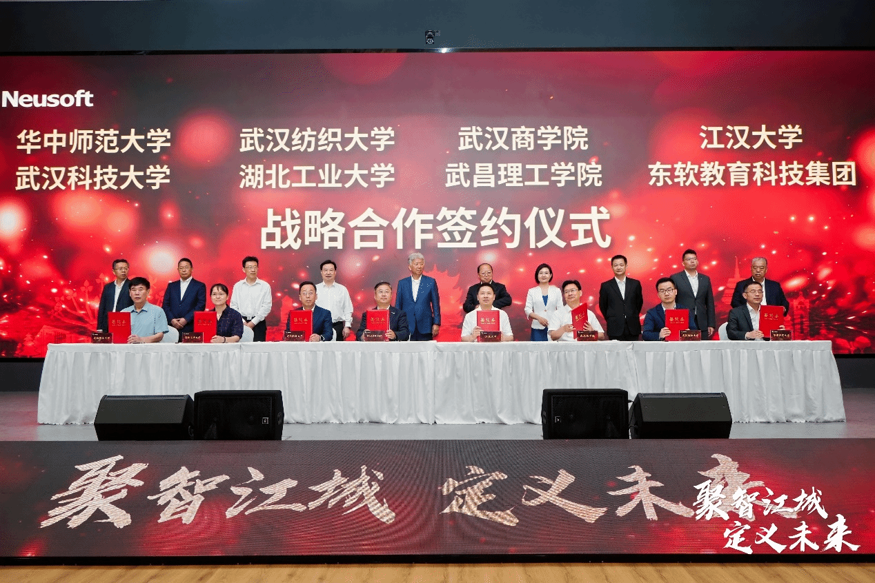 等七所高校。武汉市委常委、武汉经开区党工委书记刘子清,武汉市副市长汪元程,武汉经开区管委会主任唐超,东软创始人、董事长刘积仁,东软集团副董事长兼CEO荣新节等领导共同见证签约。
