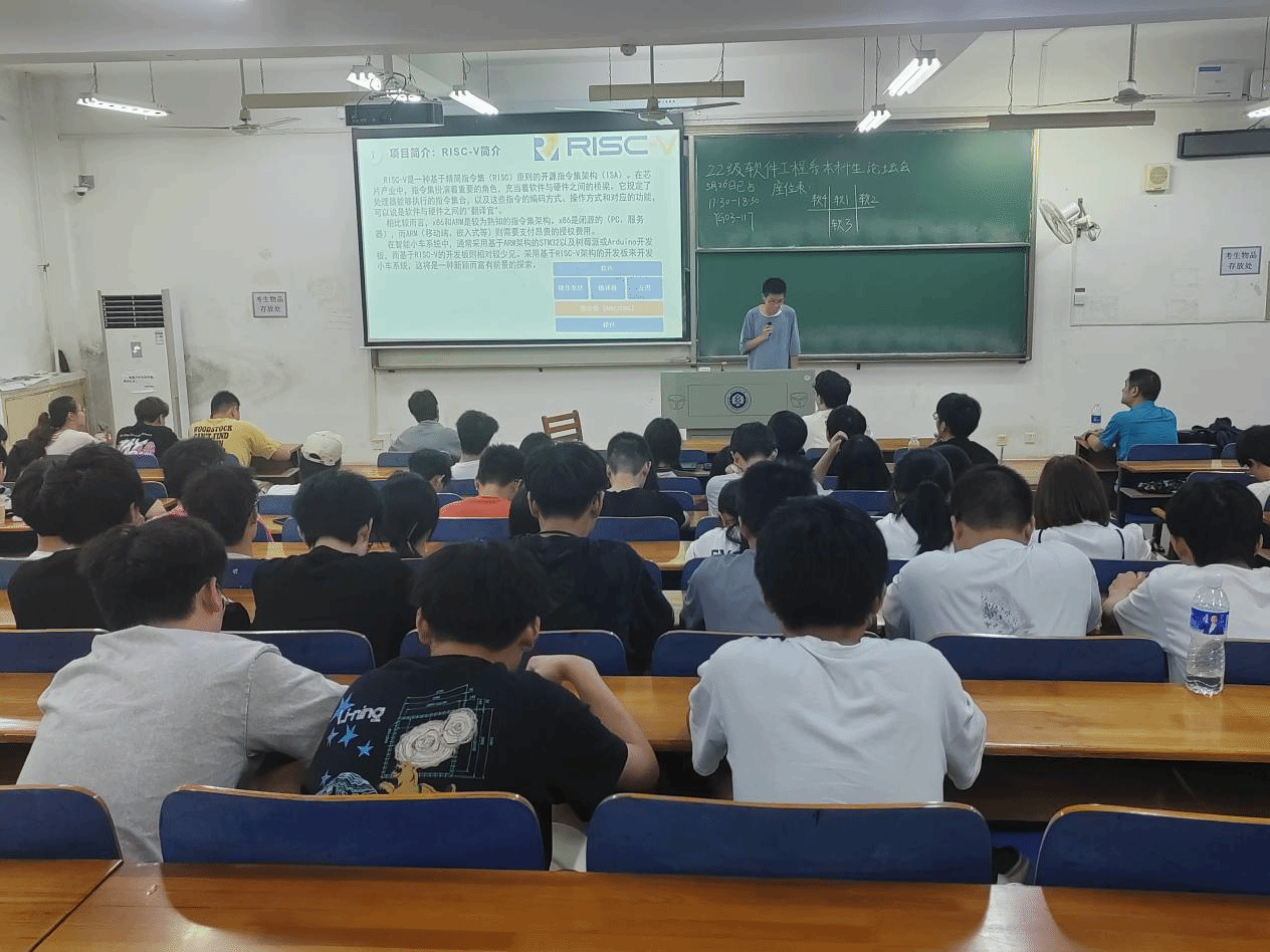 2022级软件工程专业的孙培伶同学为大家介绍了他参与的项目“基于RISC-V的小车系统”。从项目的简介,到前期准备的罗列,最后到现阶段成果的展示,他一步步详细地为大家展示了该项目的研究过程并在最后分析了该工作的局限性,提出了未来展望。最后,他强调最重要的是要勇于尝试,坚定而耐心地迈出一步,要坚持学习,善于利用各类学习资源。