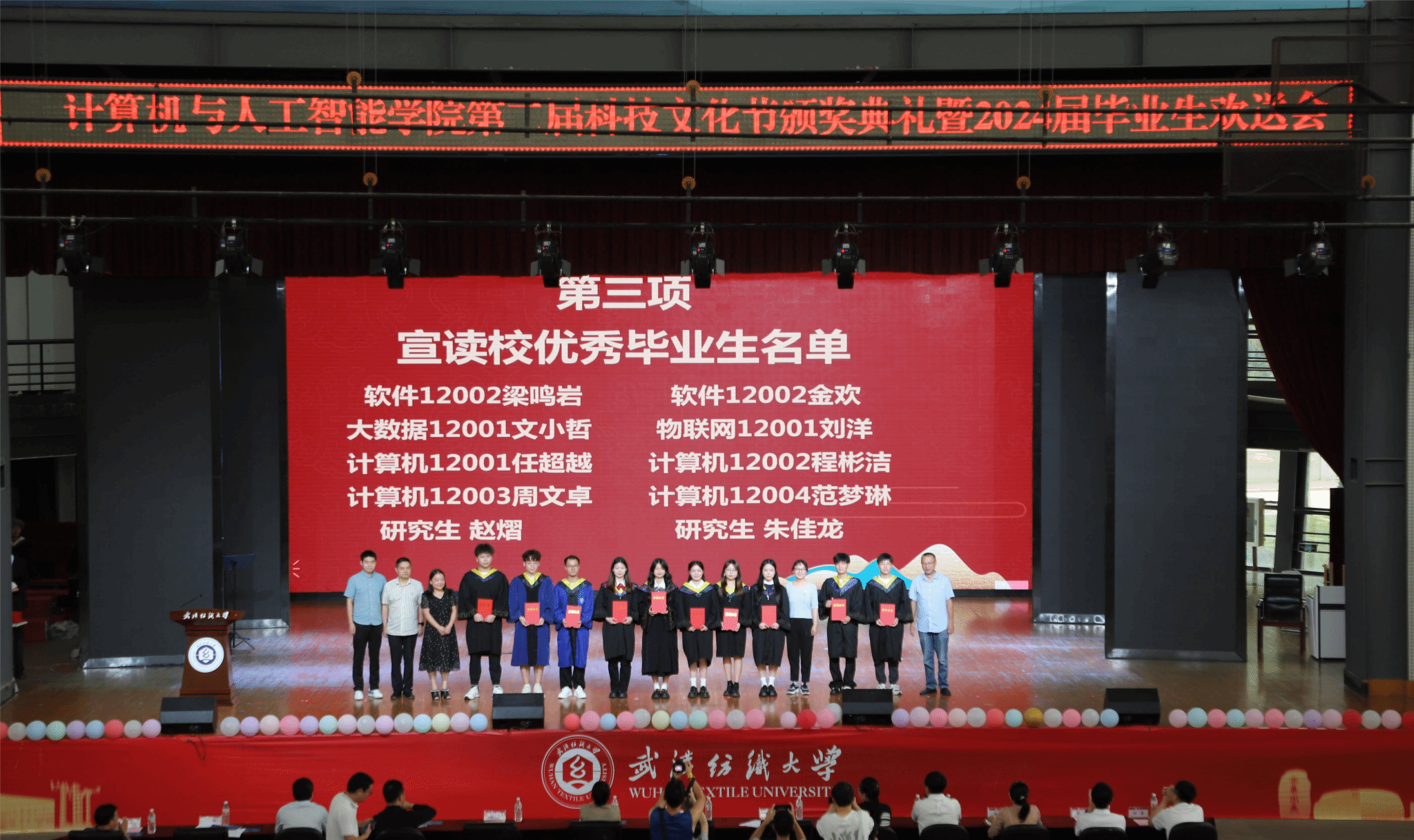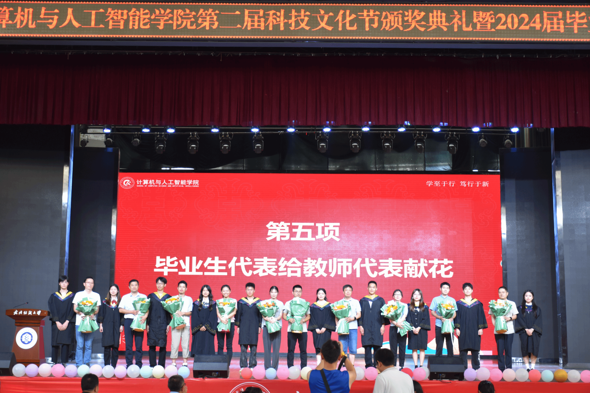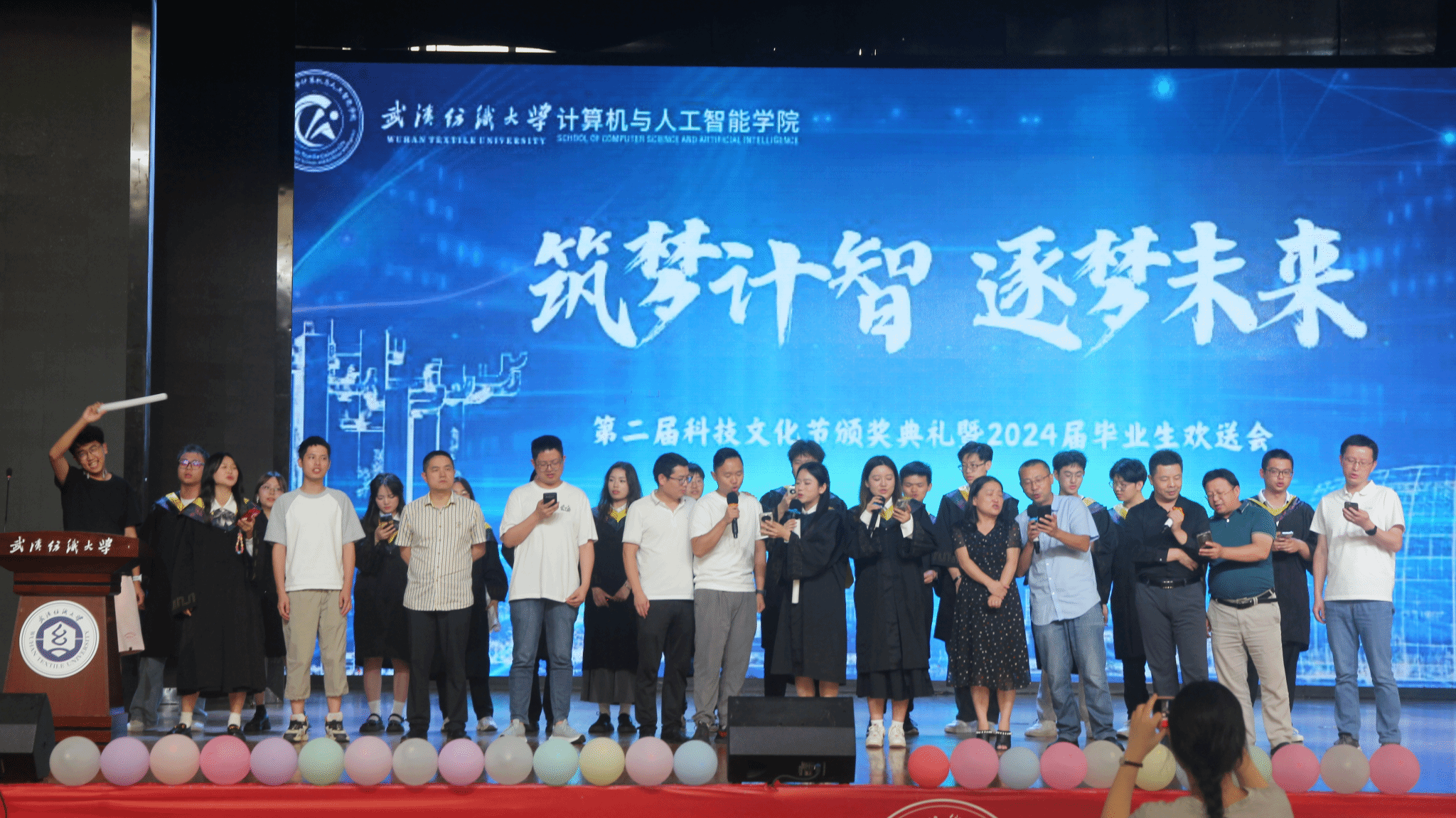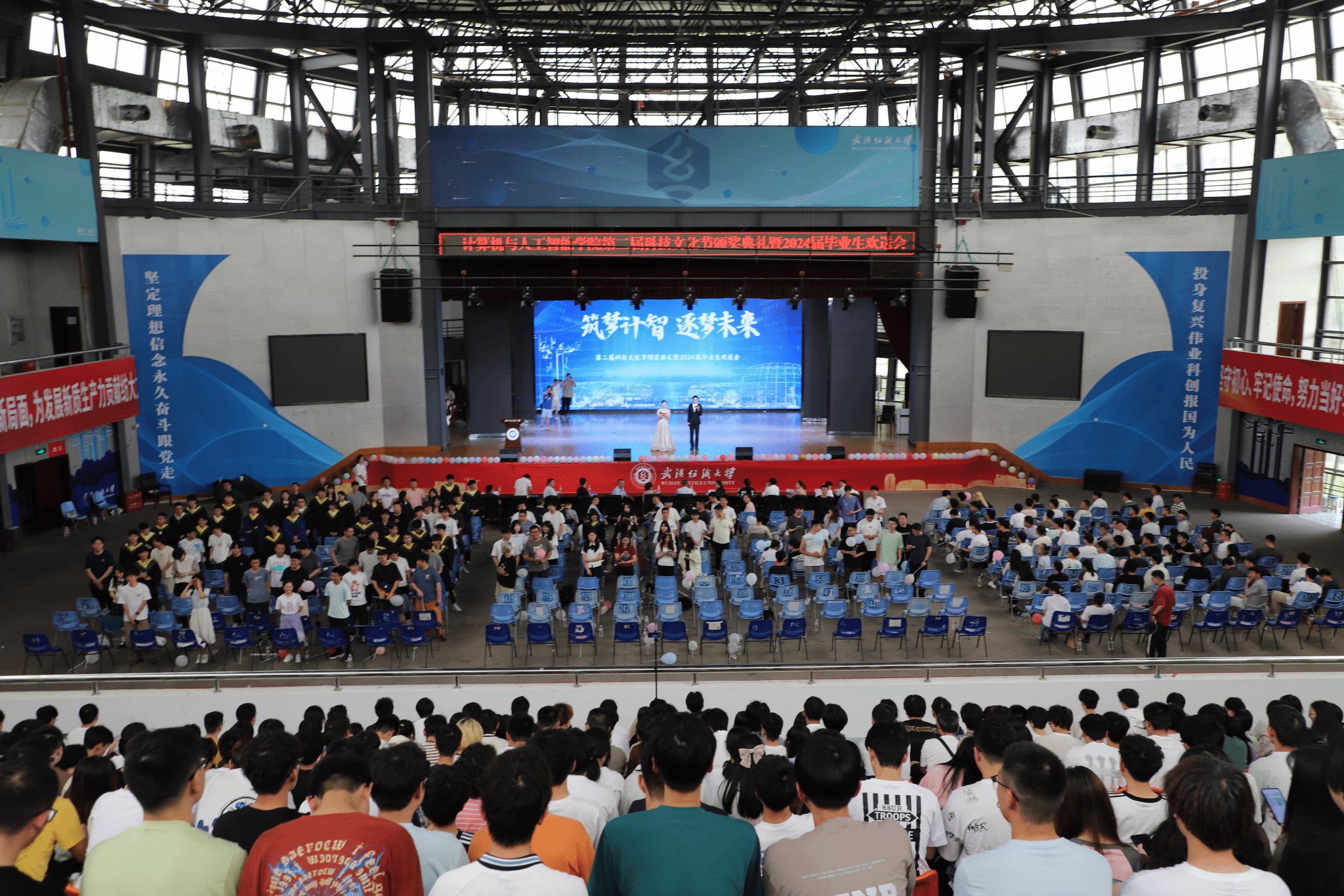 6月11日,男同 在大学生活动中心演播厅举办了以“筑梦计智·逐梦未来”为主题的科技文化节颁奖典礼暨2024届毕业生欢送会。校党委副书记、副校长罗锦银,学校办、学工部、研工部、校团委、教务处等部门负责人,校友代表王波、戈明亮、林鑫等,全体院领导、教职工,本科生、研究生等1000余人参与了本次活动。