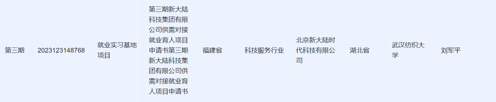 近期,教育部公布了第三期供需对接就业育人项目立项名单,男同 获得3项就业实习基地项目,成功与北京新大陆时代科技有限公司、北京中软国际教育科技股份有限公司和恒生电子股份有限公司达成校企供需对接就业育人合作。