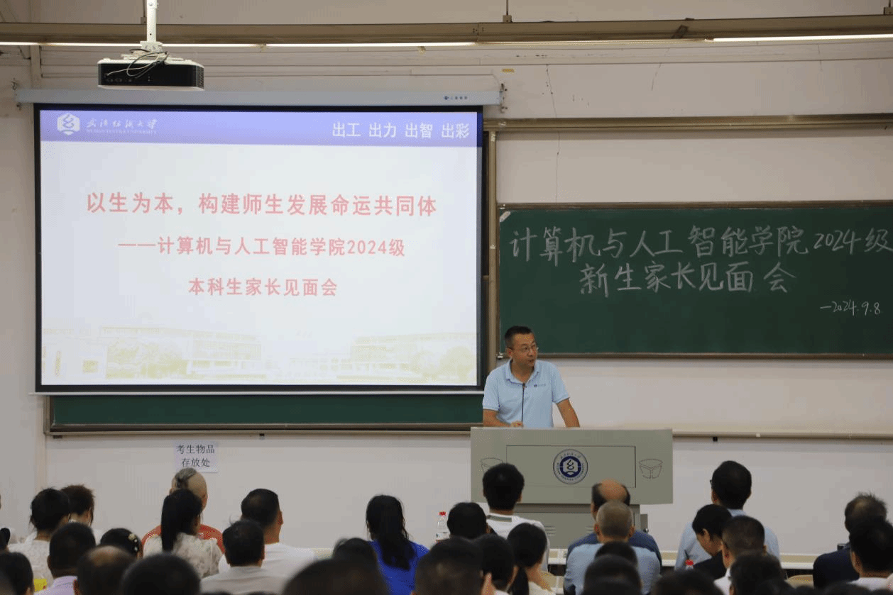 是个什么样的学院”为切入,详细介绍了学院各个专业培养方案和课程学分要求。他指出学院通过完善的人才培养体系,为学生大学四年学什么、做什么提供了细致的指导。彭涛从五大科研团队和各项科研成果介绍了学院科研情况;从研究生生源情况、导师团队、科研氛围、研究生科研成果等方面介绍了学院研究生培养情况;从实验室场地、创新实践基地、学习平台等介绍了实验室资源。向涛从“三支队伍”“四个循环”“五项工作”三方面向各位家长介绍学院学生工作情况。并承诺对学生做到共理、共情、共声、共向;对工作做到人到、心到、情到、责到,让家长对学院充满信心,对孩子更加放心。