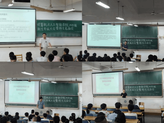 9月8日下午,学院在三栋教学楼215、216、217室分场举行2024级新生年级大会暨师生见面会。学院领导班子,班主任代表和23、24级辅导员分场参加。会议上领导老师为同学们提供宝贵建议,鼓励新生们珍惜大学时光,树立远大目标。新生班主任鼓励大家保持求知欲,勇于探索,强调责任感和集体合作的重要性。辅导员则对后续工作作简要说明。这次大会进一步加深了新生对学院的认识,增进了师生之间的互动与交流。