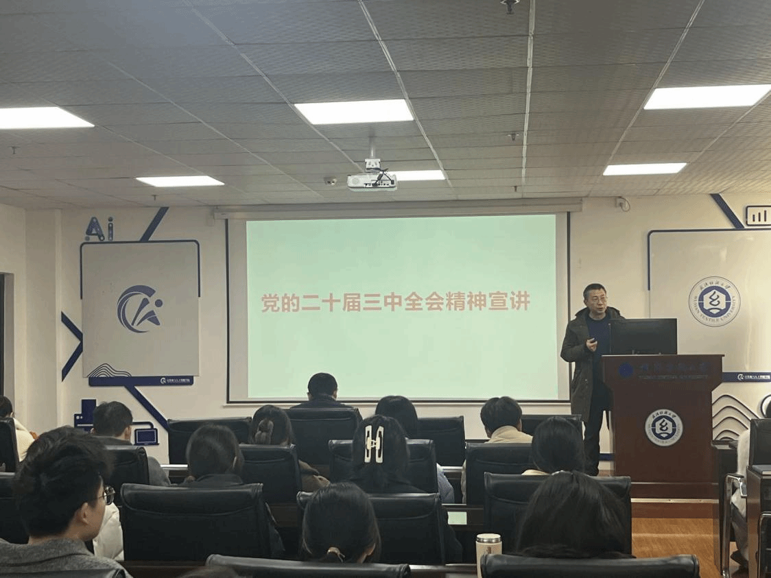 为深入学习贯彻党的二十届三中全会精神,引领广大青年学生凝心聚力、奋发进取,在中国式现代化建设中挺膺担当,推动党的二十届三中全会精神入脑入心、见行见效。12月31日下午,男同 党委书记晏伟在崇真楼南楼A4030为本科生党支部讲授专题党课,宣讲党的二十届三中全会精神,学院党委副书记向涛;本科生党支部书记廖龙、张栋、谢瑞清、易凡;所有本科生党员、入党积极分子参会。