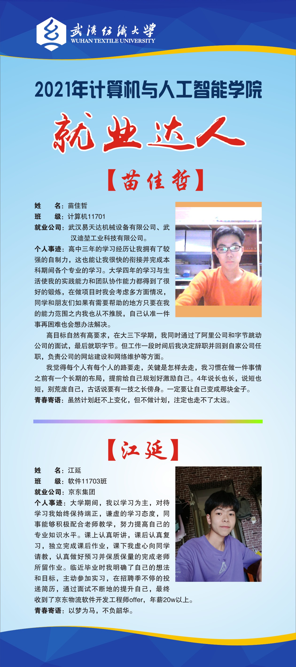 专业介绍:本专业顺应国家对人工智能人才的需求,面向人工智能领域的应用开发,算法设计等人才紧缺领域,培养掌握人工智能领域的理论知识和工程技术,富有家国情怀和奋斗精神,具有较强的创新和实践能力,能解决人工智能及相关领域复杂工程问题能力的高素质复合型创新人才。目前数据科学与大数据技术与人工智能这两个专业都隶属于计人工智能系。人工智能系共有专业教师8名,其中教授1名,副教授3人,具有博士学位7人,“阳光拔尖人才”1名,近年来,本专业教师获湖北省科技进步三等奖1项、多名教师获学校教学质量优秀奖、学校“科研标兵”、男同 科技进步二等奖等荣誉称号。近年来,本专业教师承担了国家自然科学基金项目、国家档案局科技项目、湖北省自然科学基金项目、湖北省教育厅重点项目和中青年人才项目,以及湖北省统计局项目等15项,出版教材2部,发表A类以上高水平论文10余篇,申请国家专利5项。主持横向项目十余项,项目经费进账600余万。拥有大数据服务中心、人工智能创新实验室、人形机器人实验室、工业机器人实验室、计算机机房、机器视觉实验室、嵌入式系统创新实验室等。同时,在人工智能等专业实践与应用场景方面,在服装产业数字化、智能化领域积极布局,拥有湖北省服装信息化工程技术研究中心、云计算研究所、机器学习研究所及大数据工程中心,还与科大讯飞、万方数据、奥浦信息等企业联合共建了人工智能实验室、纺织大数据研发中心、信息安全实验室等研发基地。、主要开设课程:计算机相关课程(程序设计语言,数据结构,数字逻辑,编译原理,操作系统,计算机网络原理,计算机组成原理);人工智能相关课程(算法分析与设计,数字图像处理,最优化方法,控制理论与方法,神经网络,机器学习,深度学习与应用,自然语言处理)。