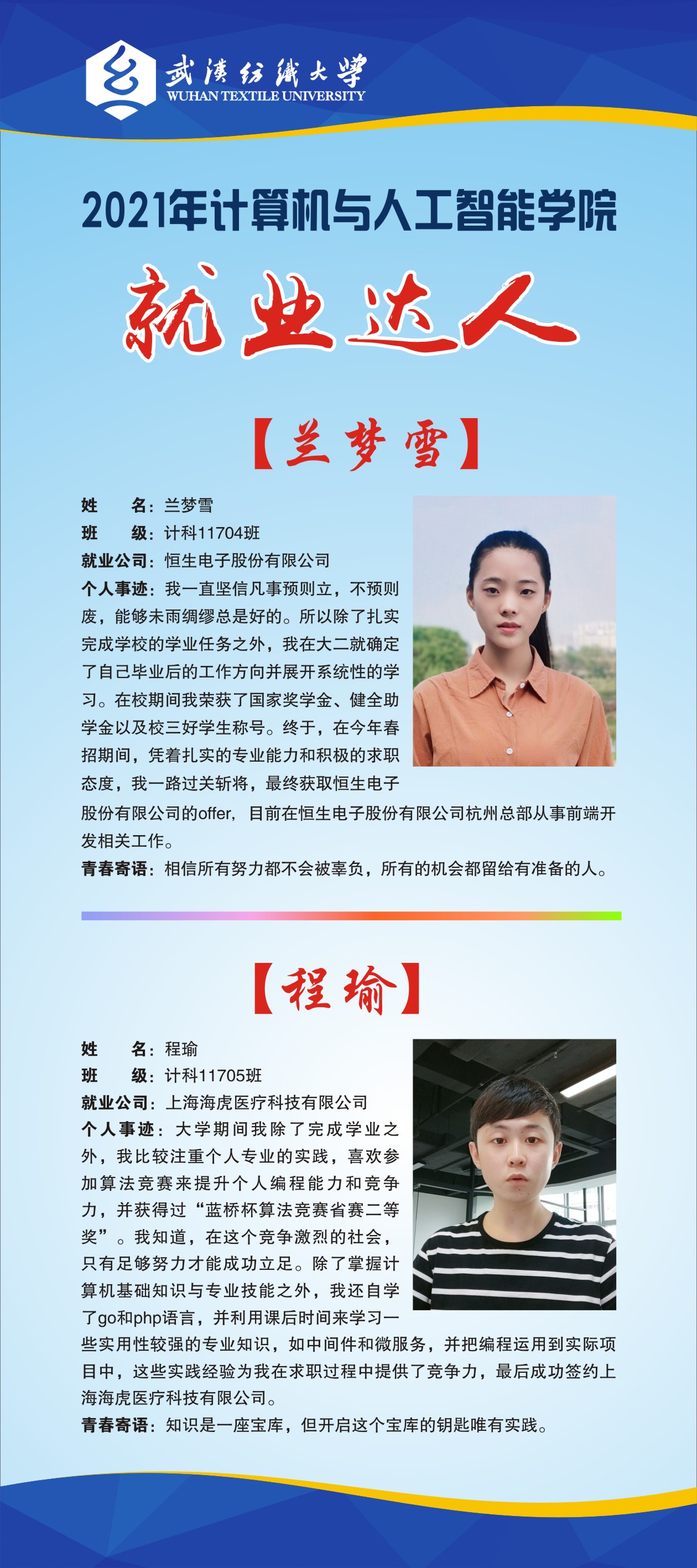 学院坚持“一切为了学生的发展”的育人理念,秉持“创建一流的基础课教学、培养具有一定创新能力的高素质应用型人才”的育人目标,不断探索与创新人才培养模式,鼓励学生参加第二课堂活动,坚持实施导师制,开展“一加一”指导,实施“学业与生涯发展赋能计划”,聚焦本科生学业发展与职业生涯规划的指导与帮扶,开展个体辅导与团体辅导、导师指导与朋辈帮扶、课程辅导与发展指导相结合,全面提升学生学业与发展能力。学院毕业生初次就业薪酬多年居全校前列,毕业生高薪就职于阿里巴巴、网易、新美大、欢聚时代、深信服、九言科技等知名互联网企业。