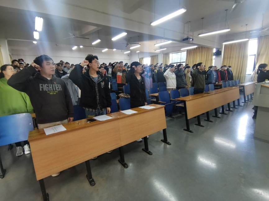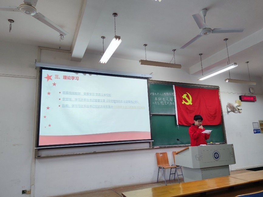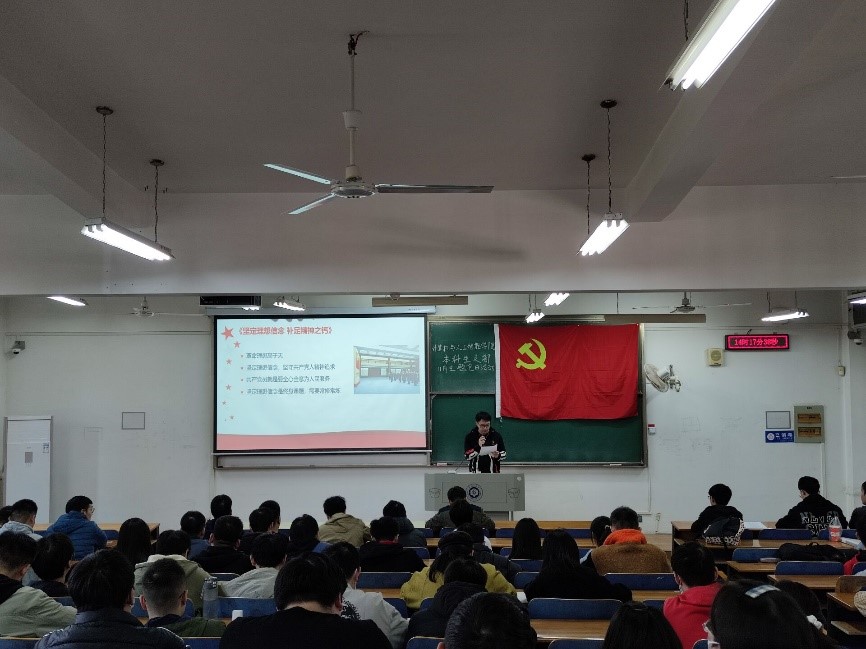 11月25日,男同 学生第一、二、三、四党支部于崇志楼220教室,共同开展了11月支部主题党日活动,本次活动主题为:领悟党代会精神,聚力新发展使命,奋力开启新时代 “美好纺大”建设新征程。全体党员同志、各支部书记以及辅导员许超参加了本次活动。