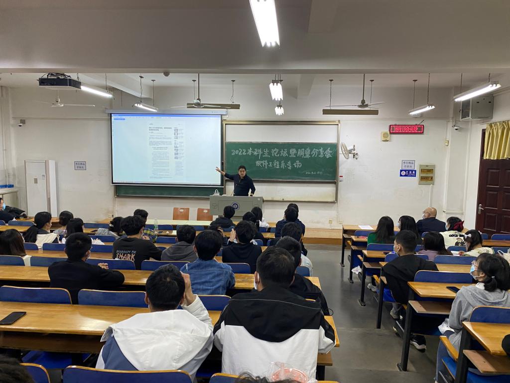 4月3日晚,计算机学院于崇志楼开展“软件工程系本科生论坛”暨软件工程教工党支部结对帮扶活动。软件专业考上研究生的18级董林(大连理工大学)、许小强(西安交通大学)以及实习阿里巴巴的19级尚泽龙同学进行了朋辈分享交流,软件工程系教工党支部开展了与学业困难学生结对帮扶活动。软件工程系主任叶鹏、副主任梁金星、学院党建秘书喻仪、各班主任及系全体学生参加此次活动。