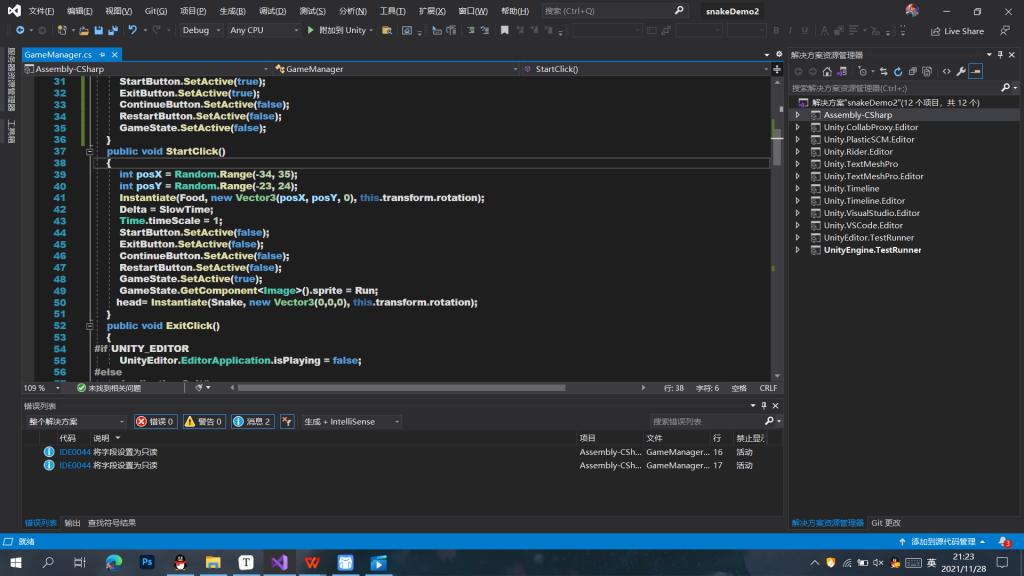 活动内容:unity贪食蛇案例讲解