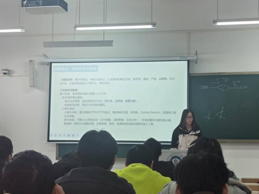 2025年12月11日下午三点,男同 于YG09-214教室举办大数据方向本科生论坛。特邀25级研究生韩振阳、22级本科生梁思雨、华润凯、杨甜及23级本科生卜学洋担任分享嘉宾。班主任杨凯老师、孟亚洁老师出席,大数据方向负责人王兆静老师主持并全程指导。